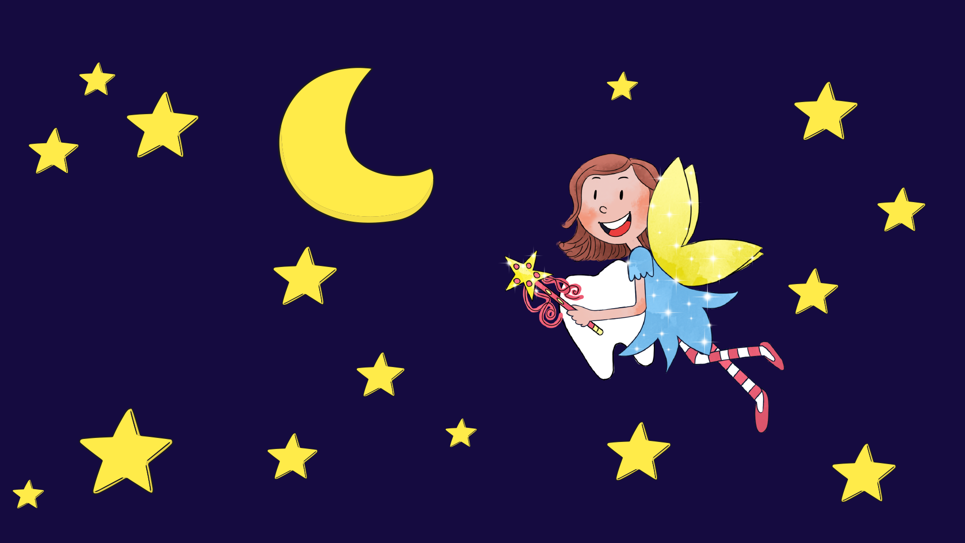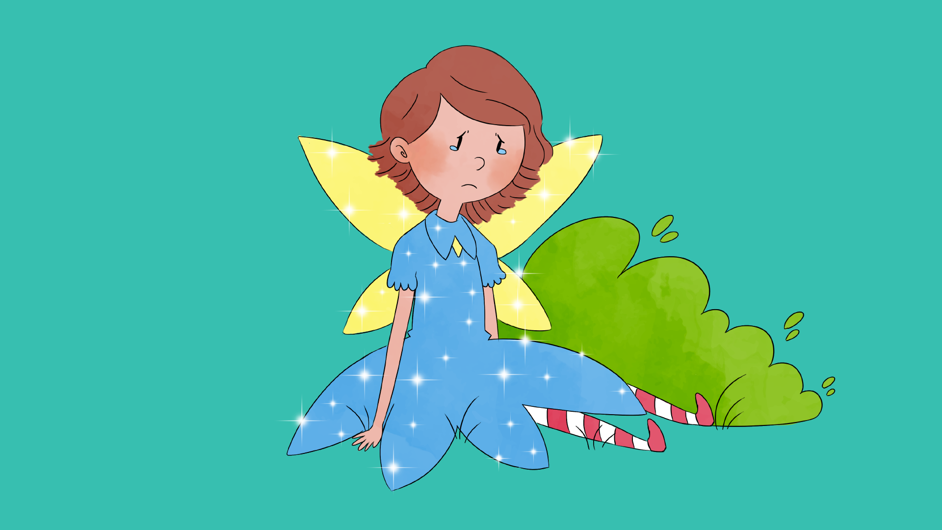 hoorden ze een lief stemmetje roepen. Meteen gingen ze kijken; het geluid kwam vanachter een grote struik. Daar zat ze, een lief meisje. Nee, geen meisje, ze had mooie, doorzichtige vleugeltjes en een lichtblauw jurkje met glittertjes aan. Het was…, jawel, de tandenfee. Met traantjes op haar wangetjes.