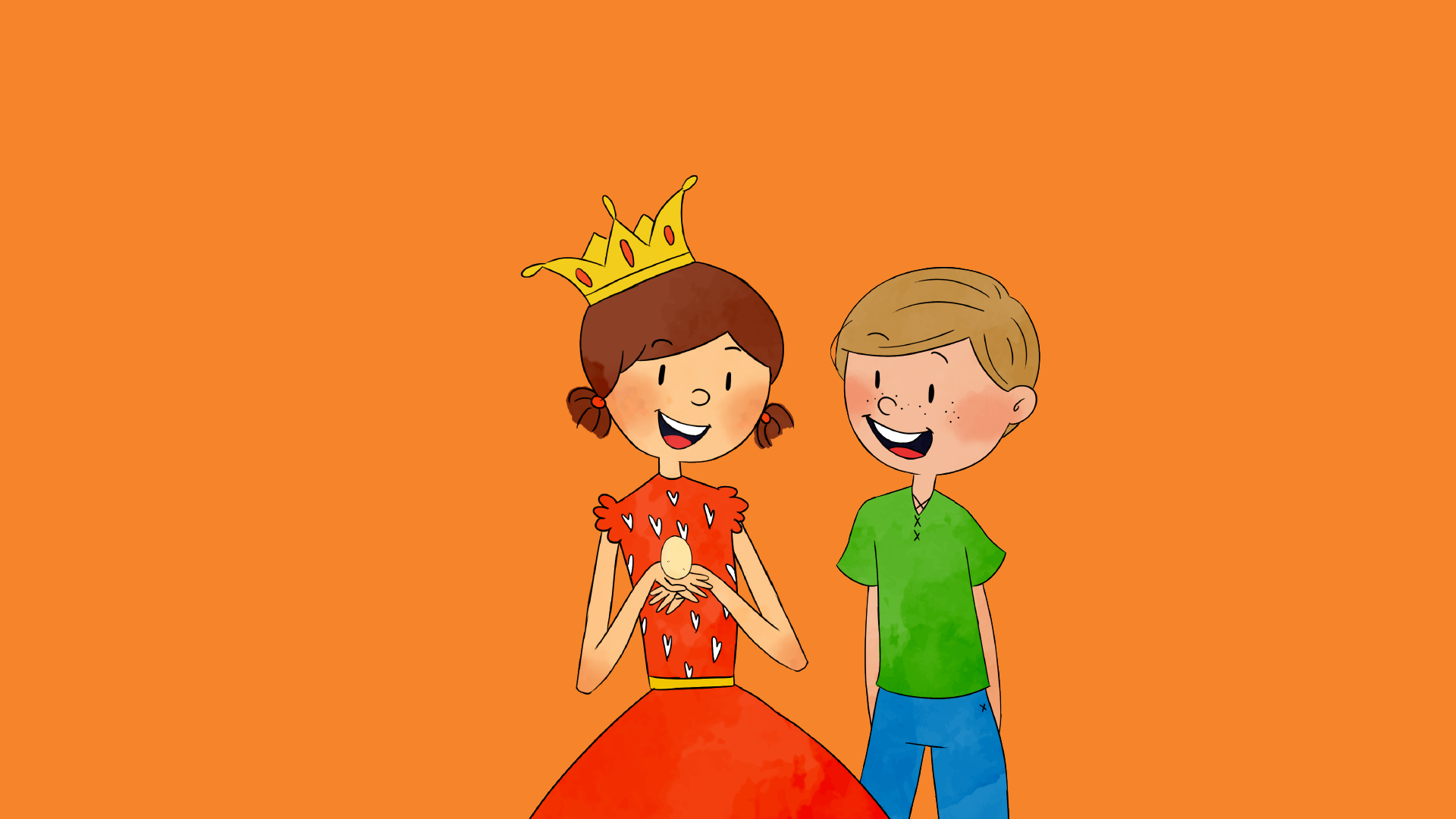‘Vanaf nu versieren we eieren met het Lente-feest,’ riep Koning Karel luid naar het tafelgezelschap, ‘Als dank voor de kippen en hun lekkere eitjes en ter ere van de lente’. Wat was hij trots op zijn dochter. ‘Eet u allen smakelijk. ’En dat deden ze. Glansje en Tom schonken ook een heerlijk glas verse jus d‘orange in. Daar zit best veel suiker in, dat wisten ze natuurlijk wel. Maar vandaag was dat niet erg. En vanavond zouden ze als iedere dag hun tanden weer goed poetsen.